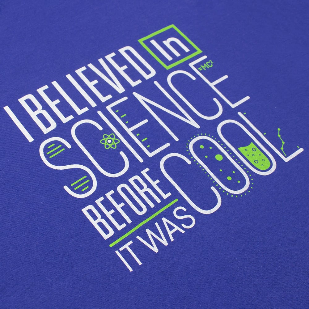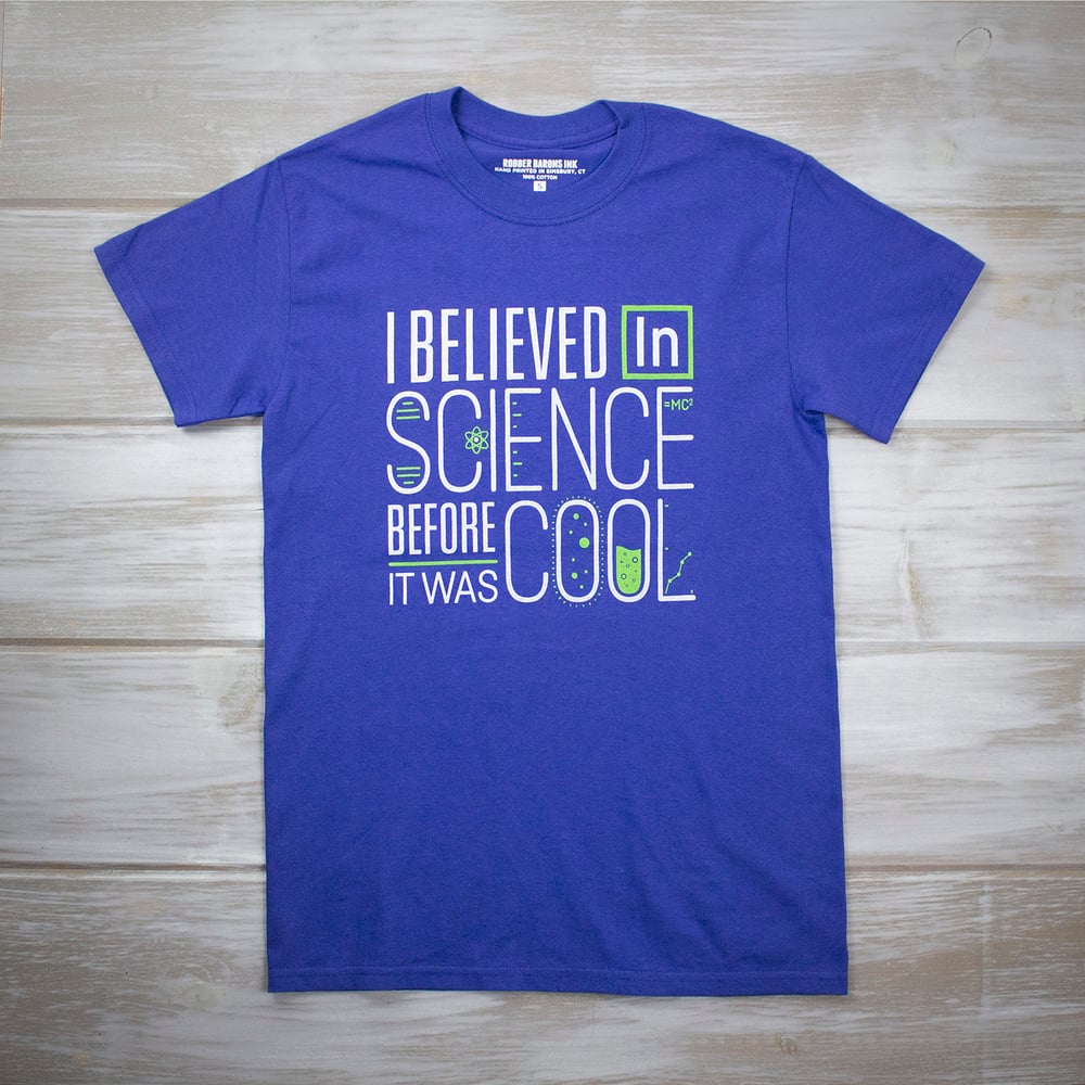 Science: where we find exciting new discoveries every day, but still can't explain why some people think pineapple belongs on pizza. White and green ink on blue tee.